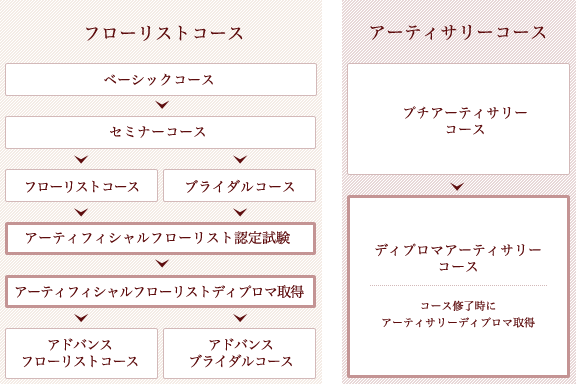 理事校や認定校でカリキュラムを受講するには、日本アーティフィシャルフラワー協会(JAFA)への入会が必要になります。